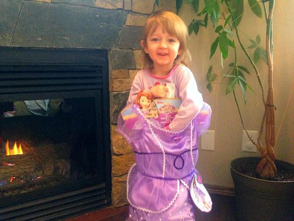 She was so thrilled to receive a brand spanking new, sparkly Sofia the First Royal Cursty Dress from Disney Junior, it was hard to keep her still for the obligatory snaps.