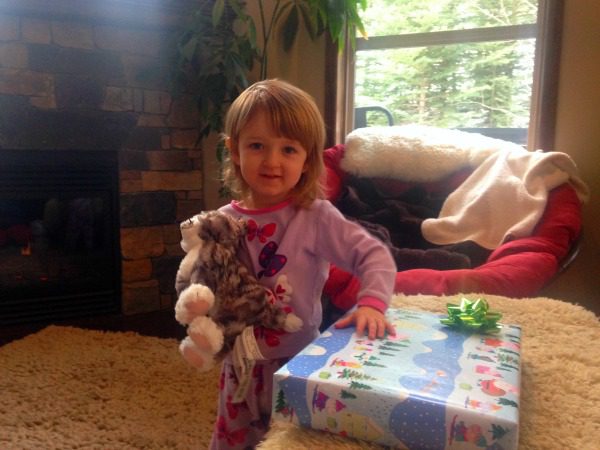 This little cherub was so thrilled to get a present, she stood in awe for a few minutes just admiring the wrapping paper.