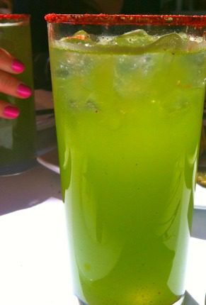 At the onset of the acoustics show, we admit defeat and make a bee-line for the bar, feeling quite justified in downing something fruity and fun. (BTW: Have you noticed the trend towards green margaritas these days?)