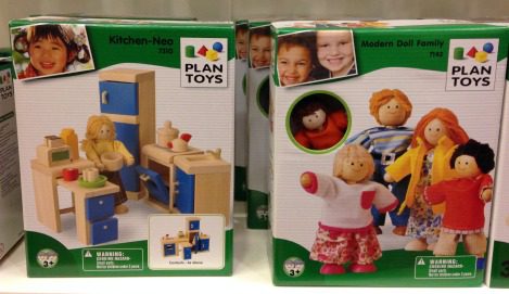 Tykes (and Montessori types) are all over Plan Toys Wooden Play Sets (from $14.99), at bo bébé.