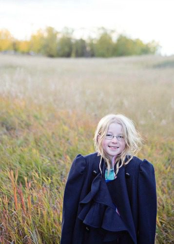 Texture is key. Think nubby sweaters and layers. I love this picture of Eve – not planned, but my navy jacket contrasts nicely against her hair and the golden light.