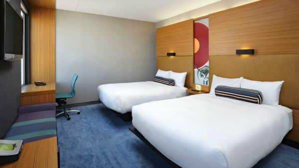 The indoor pool boasts a 130 ft corkscrew water slide, plus there’s a Family Fun Zone that’s home to two bunnies! Older kids can play old school video games in the Teen Lounge and if you need more space than your standard hotel room, opt for a two-bedroom Family Fun Suite that has its own creative corner, plus DVD and Xbox.