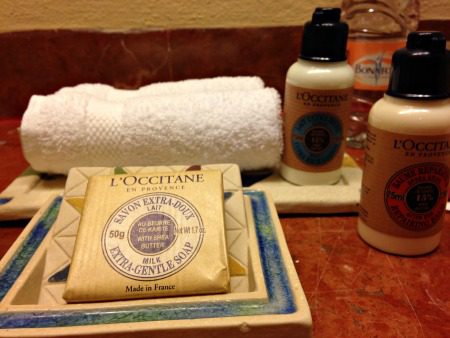 Spa bathroom? But of course! I’ve seen Philosophy, Molton Brown and Aveda products kitting out the bath, but never L’Occitane. Squee!