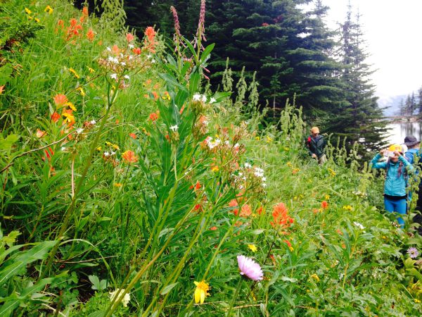 With the scent of evergreens wafting in the air, you’ll meander past towering spruce trees, wild strawberry plants and tons of wildflowers. I’m no pro, but I spotted Indian paintbrushes and yellow arnica. (But not in the picture below, I have no idea what those are:)