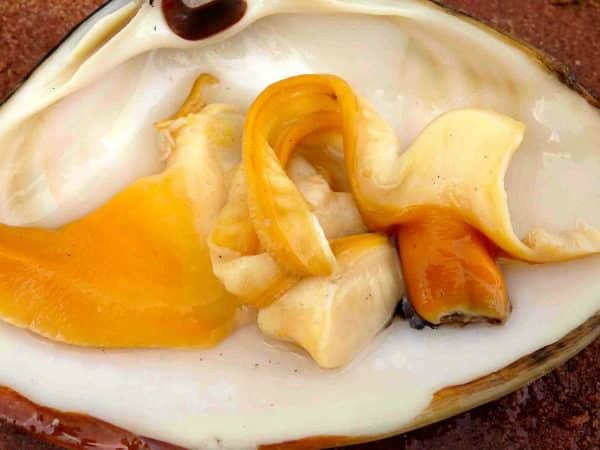 A ha, spotted one! It takes two or three strong pulls before I uncover what feels like a rock. Little did I know, pulling a mollusk out of the ocean floor is immensely gratifying.