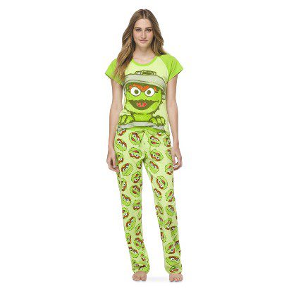 Oscar the Grouch pajamasIf you tend to wake up on the wrong side of the bed, why not embrace it with this Sesame Street number from Target? What’s up with that model’s hair? Wouldn’t you just love to be a stylist to show what women really look like when they wake up?