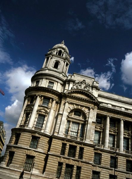 Whitehall is a road in central London filled neo-Baroque buildings that house several government agencies. (The name comes from the Palace of Whitehall, that was the main residents of monarchs until it was destroyed by fire in 1698.)