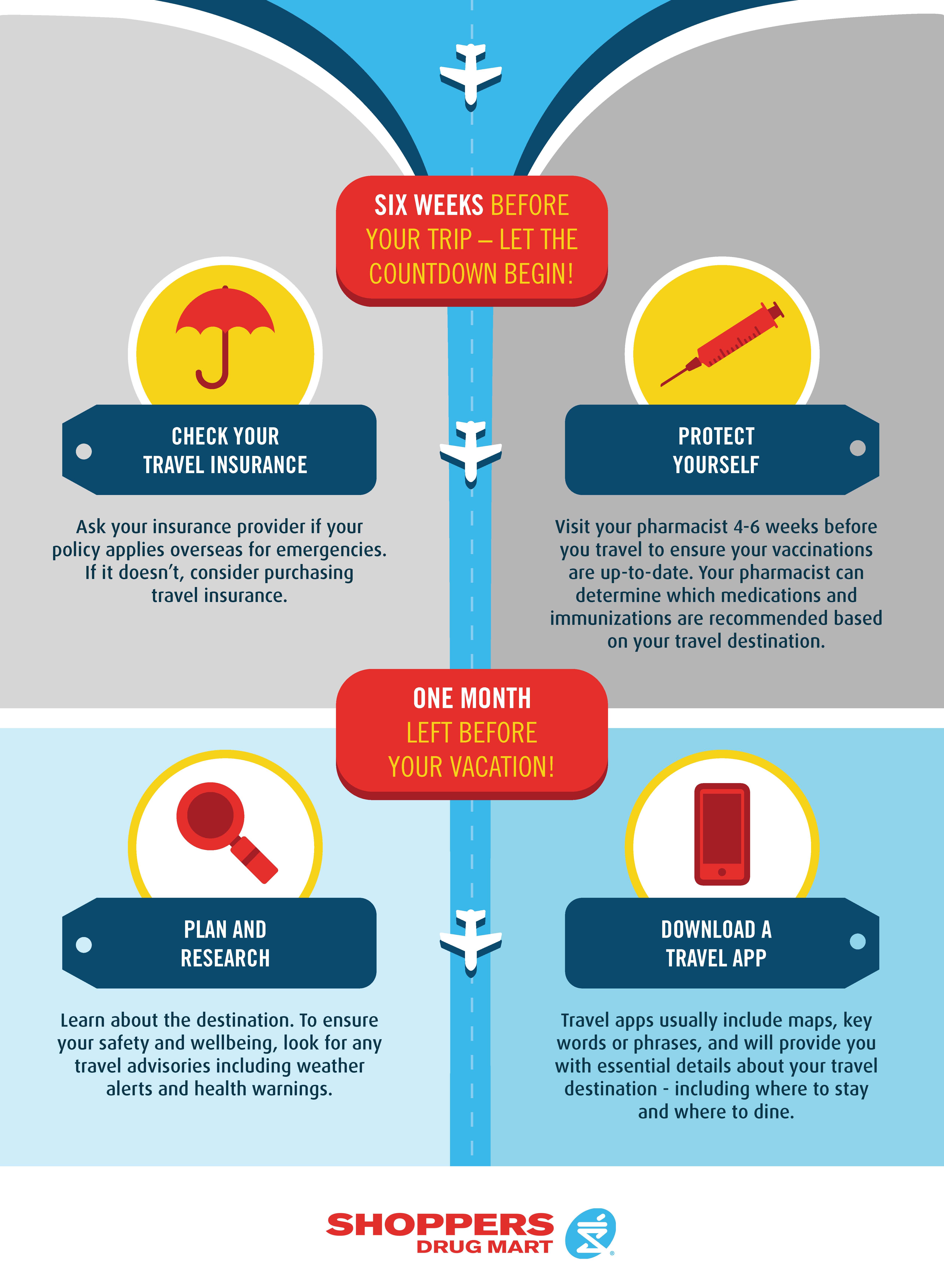 What are your plans for spring break? Like many Canadians, we use this time of year to get a good dose of Vitamin D. Sinking our toes in to the sand helps us make it through these harsh Canadian winters. So far Costa Rica and Mexico are on our family’s hit list. Besides arranging tickets and accommodation, getting up to date with our traveller’s vaccines is something we have to book out as well. Thankfully, most Shopper’s Drug Marts in Alberta offer travel health consultations, so we can get this task done quickly and affordably.