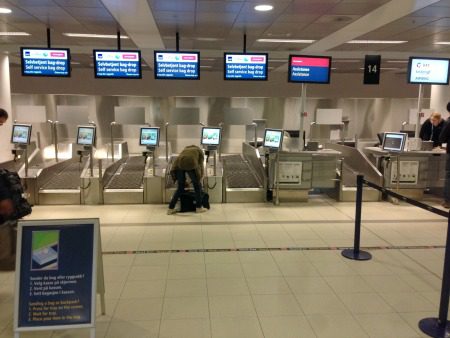 Checking in at the airport in Stavanger couldn’t be easier. The pictures below are probably familiar to you. Simply print your ticket at a kiosk and drop your bag. The differences are subtle, but they explain why there’s no line.