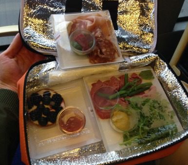My fellow passengers were a bit jealous when they compared British Airways offerings to this, complete in a reusable lunch kit.