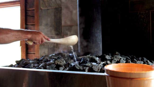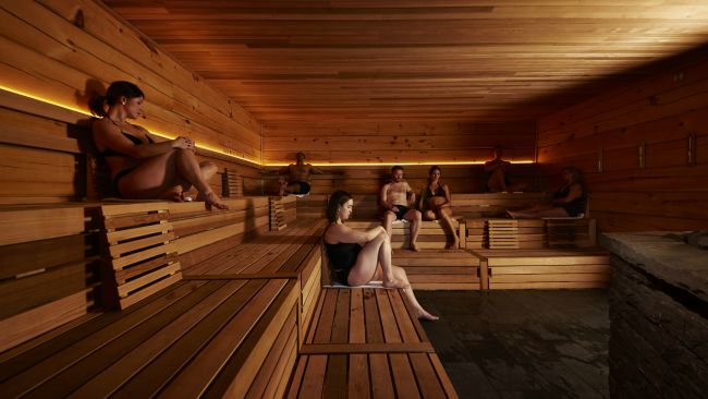 But raising your body temperature is only the first step in your thermal experience. After sweating it out, you’ll pass under a waterfall or take a quick dip in the cool plunge pools to bring your body temperature down.